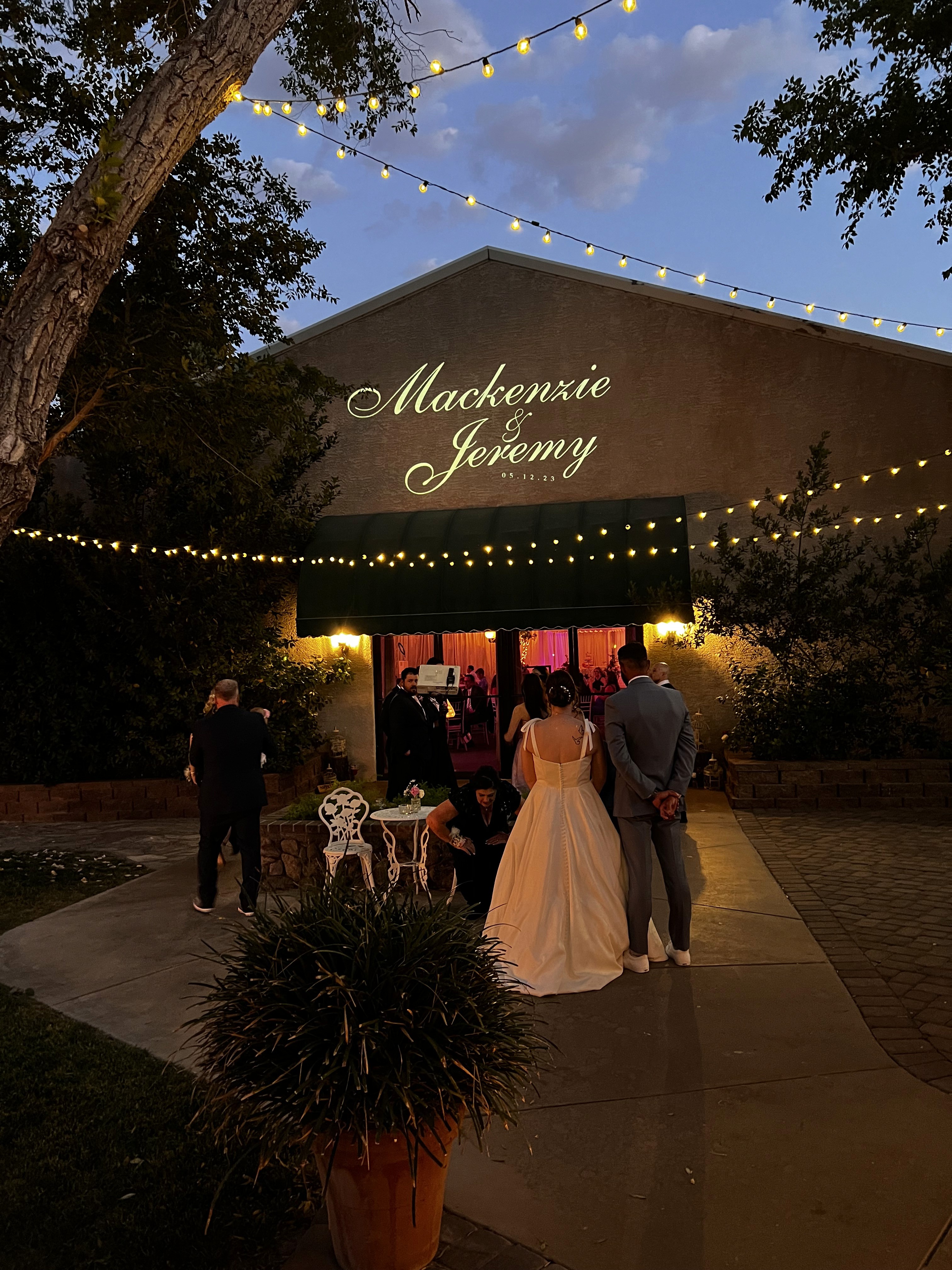 Project your names, monogram, or custom design onto walls or the dance floor. Starting at $350.